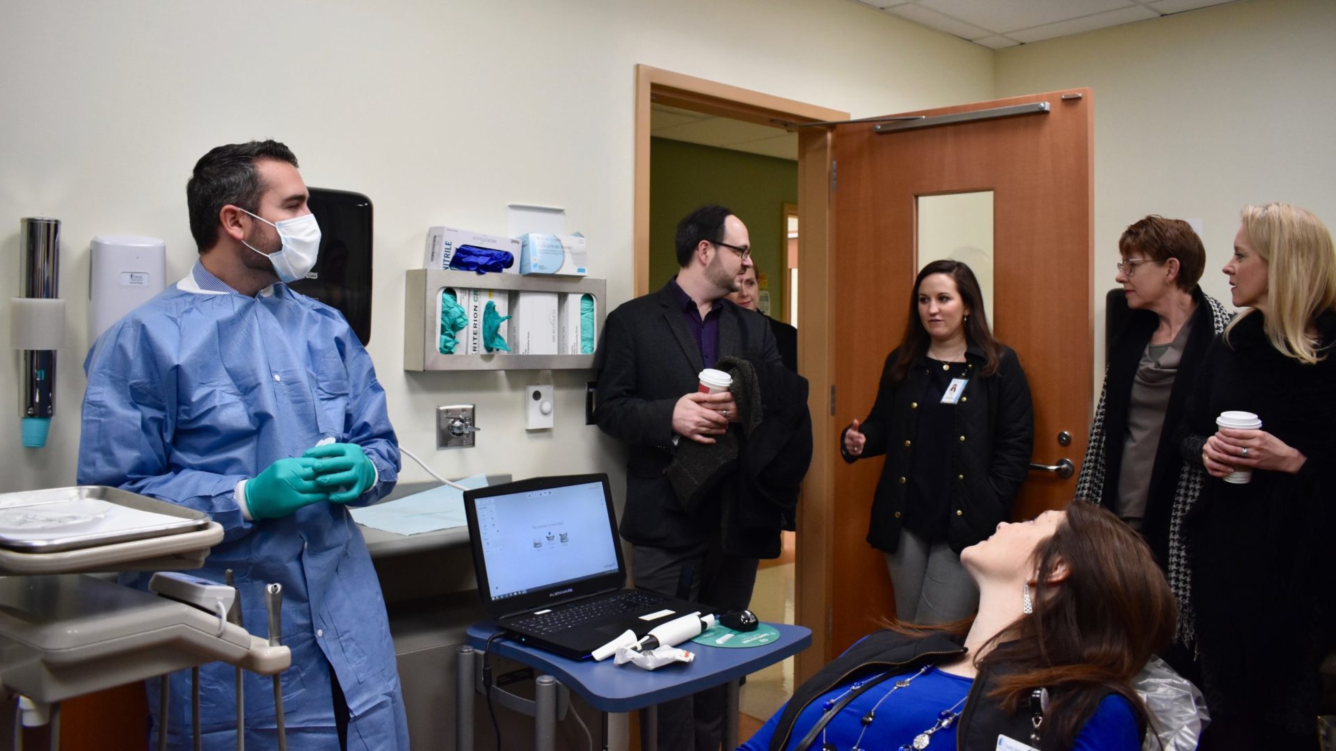 Dr. Walter Renne demonstrating cutting edge intraoral camera technology to the tour group.
