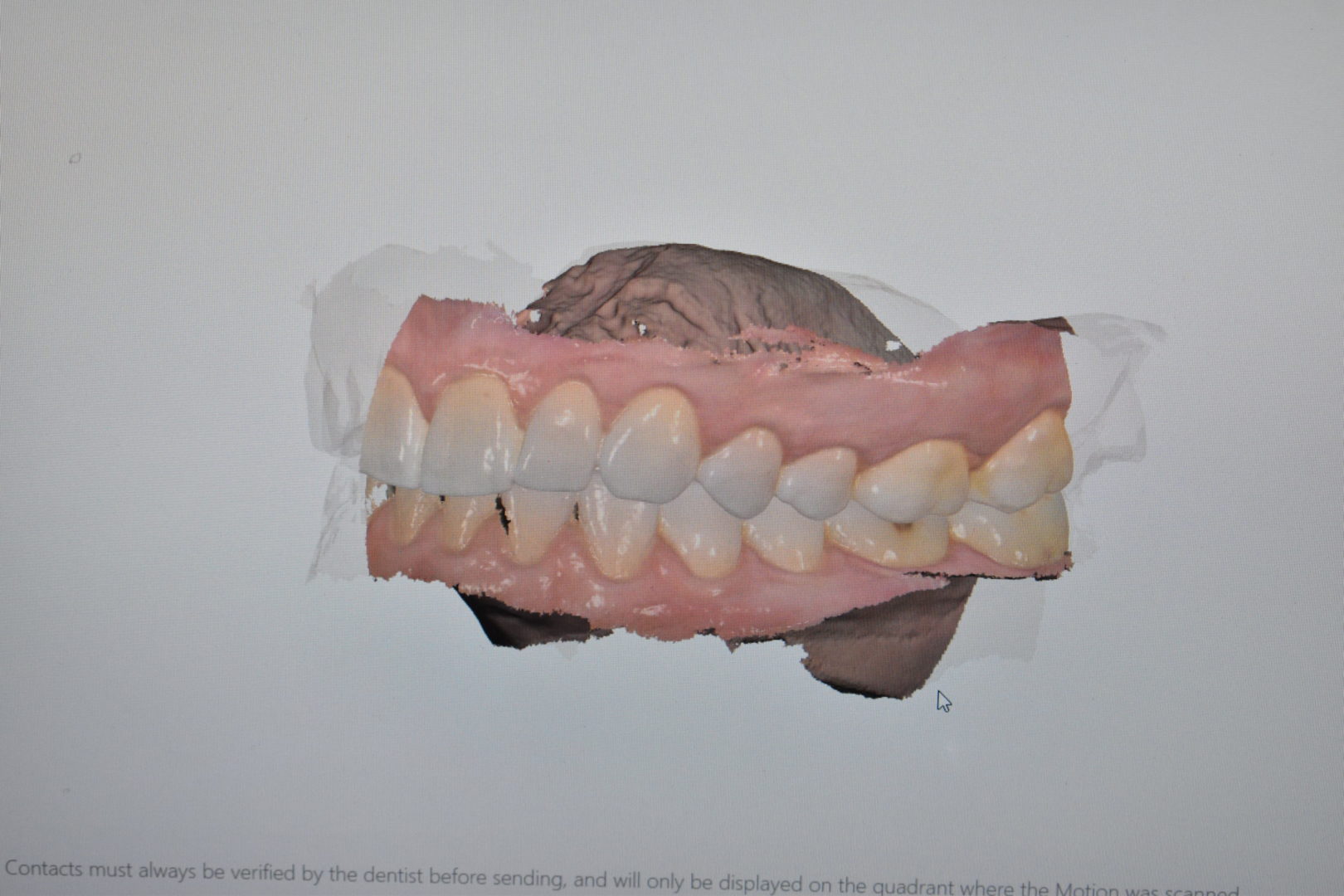 A 3D model of a patient’s teeth and gums created by an intraoral camera.
