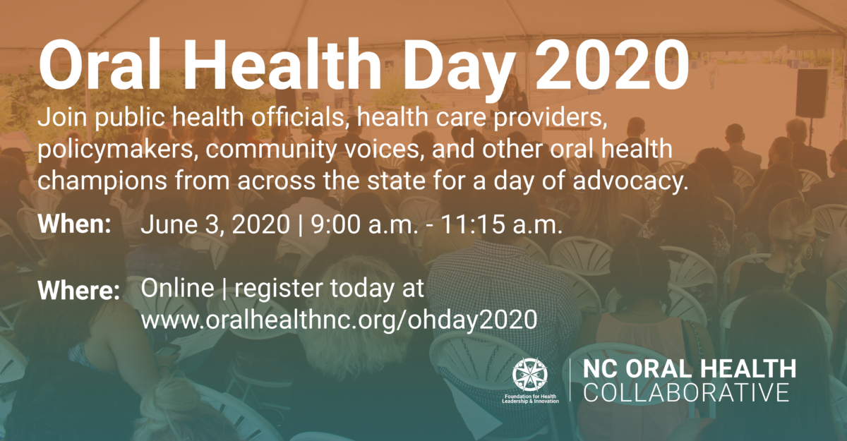 2020 marks the fifth anniversary of Oral Health Day. Our annual advocacy event, which usually takes place in person at the North Carolina General Assembly, went digital this year due to the COVID-19 pandemic. We are pleased to say that our first online Oral Health Day was a success! Despite struggles with technology—and even a few “zoom bombers” in the beginning—we had a great turnout, and our panel of speakers were engaging and informative.