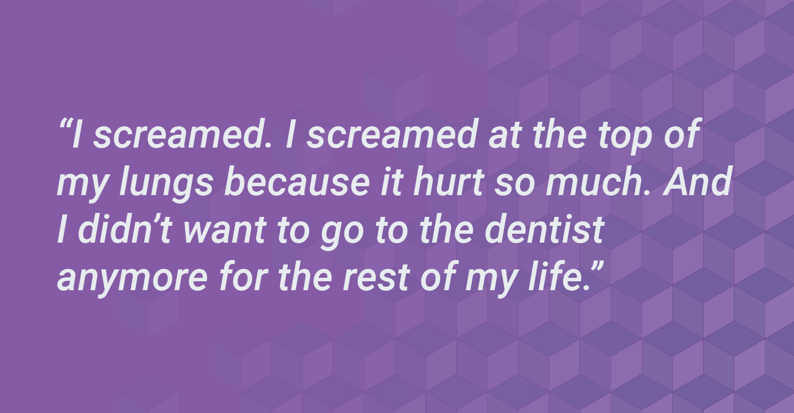“Whenever I would have a toothache, I wouldn’t tell my mom. And if I had a cavity, I couldn’t sleep at night. I couldn’t rest well. It impacted my chewing, my swallowing, and my overall health because I would have pain in my ears and down the side of my neck,” she said. “But I was so scared. I was scared to experience the pain at the dentist again.”