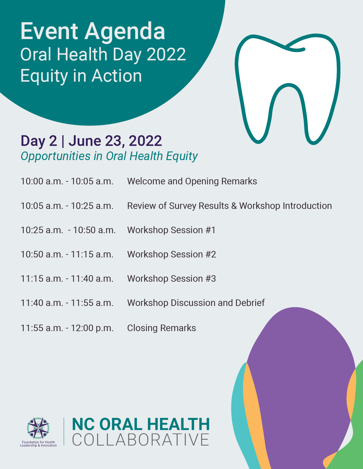 Oral Health Day will look different this year. As the first two-day Oral Health Day event, you can expect new and exciting opportunities to engage with experts and also play a role in shaping the future of oral health in North Carolina.