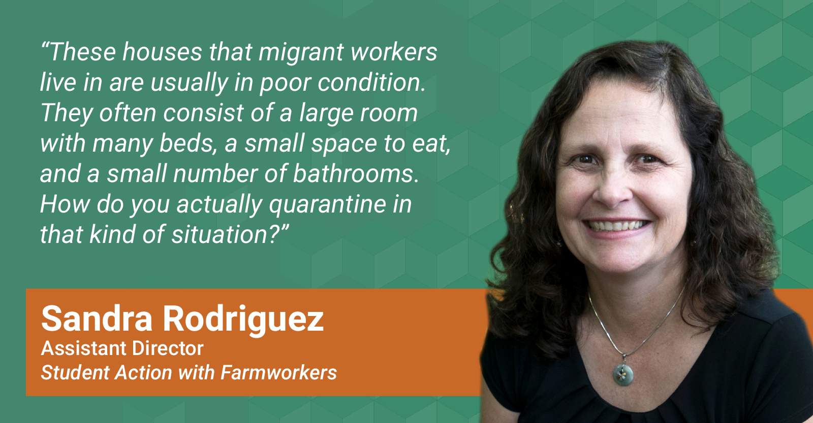 Sandra Rodriguez, the assistant director of Student Action with Farmworkers, said that farm owners do have a lot of stake in helping worker communities stay healthy and safe. But at the end of the day, putting safe practices in place is incredibly difficult, if not impossible.