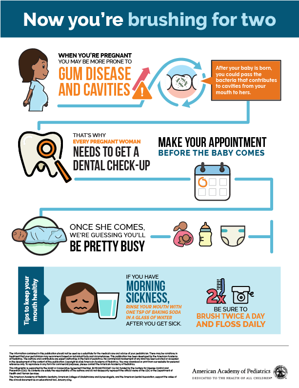 - Get a dental check-up before your delivery. If your last visit was more than six months ago, or you have any oral health issues, schedule an appointment as soon as possible.