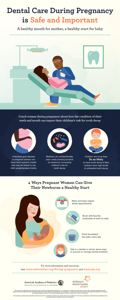 - Tell your dentist that you are pregnant and your due date. Also be sure they are aware of any medications you’re taking, specific medical conditions, any form of tobacco or drug use, or if your pregnancy is high-risk.